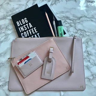 The final item I received is this large pouch with a zip handle! I absolutely love it and again is so versatile and could be used for lots of different things. I'm planning on using it for my iPad and my blog planner and pens in as its the perfect size and just looks so nice!! You could also use it as a clutch as again has got the card holder detail and the big zipper pouch so has lots of storage room and has a handle type thing on the zip of the zipper. Also all the metal hardware is gold and well as the zip and the initials again is in gold too.