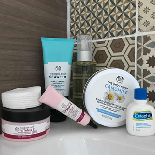 Well that was my Morning skincare, very simple unlike my night skincare routine!! I really like taking my make-up off properly and doing my little routine before bed! So to start with I take my Body Shop camomile cleansing butter, its absolutely great to take off makeup, its so easy none off this scrubbing away. So I dampen my face and then take some off the butter between my finger tips and then working it all over my face including my eyes, I then take my flannel and remove all the butter and makeup and its like magic it just melts it all away!